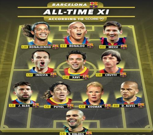 巴塞罗那历史最佳阵容(Score90版)
