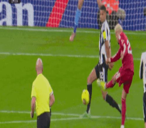 第12分钟,戈登放铲阿利森被主裁判出示黄牌警告。